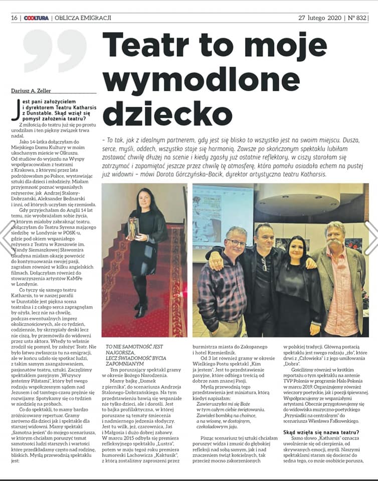 Choć Teatr Katharsis nie działa już w swojej dawnej formie, to nasze przedstawienie nadal żyje. Z ogromną radością przyjęliśmy zaproszenie księdza proboszcza z Bedford, by znów stanąć na brytyjskiej scenie.